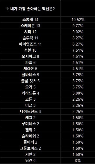 그리고 유일하게 0표, 0%를 차지한 눈물의 팩션이 있었으니