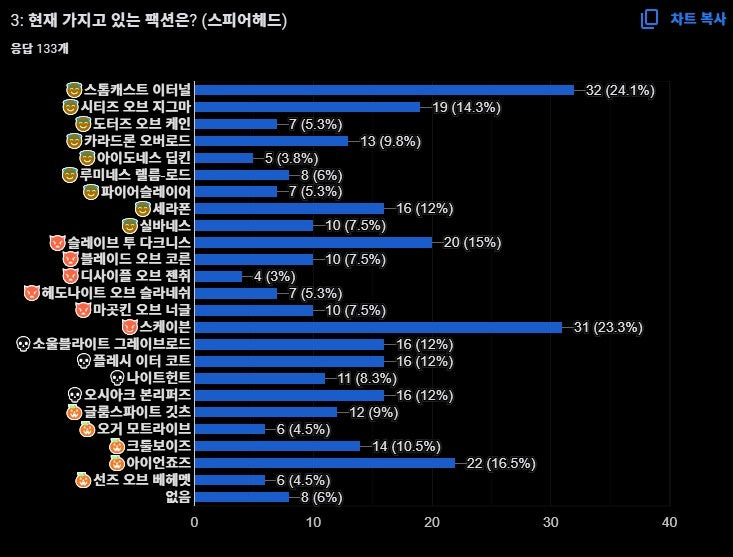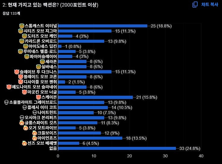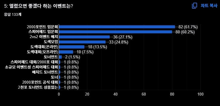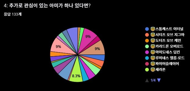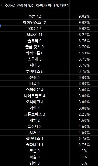 또한 '없음'이 3위인 것도 의외의 결과였습니다. 꽤 많은 분들이 현재 보유한 팩션에 만족하고 있다는 점을 알 수 있었습니다.