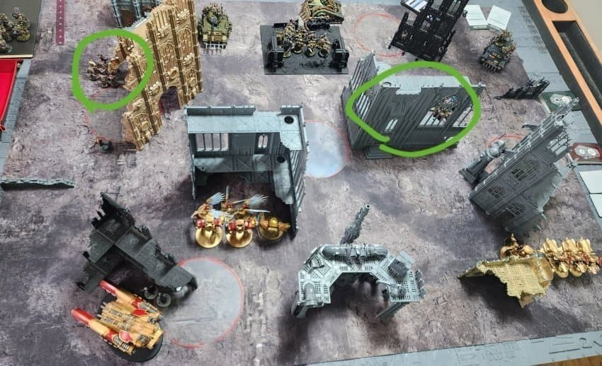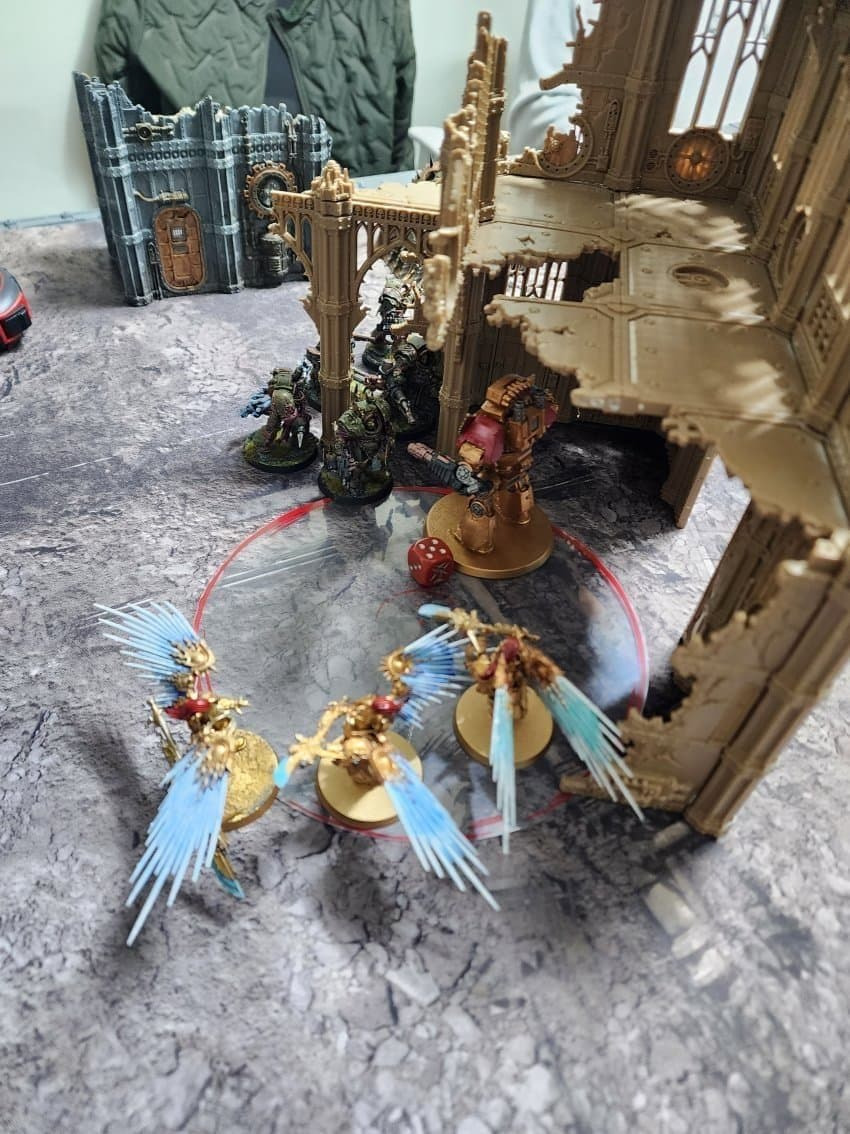 가장 강한 망치인 트라잔 + 커스토디안 워든 분대도 중앙 마커에 딥 스트라이크 합니다.