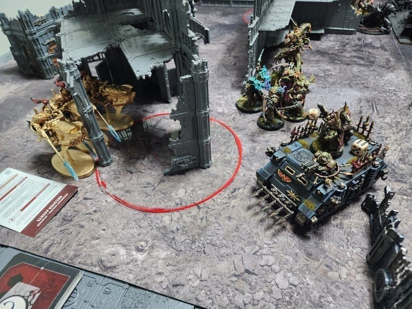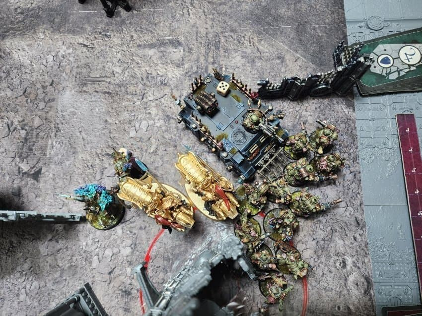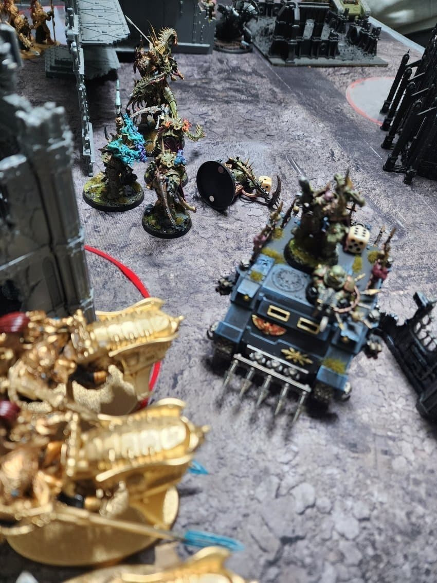 남아 있는 파이트는 우측의 타이퍼스 / 데스슈라우드 1명 / 라이노 / 블라이트 스폰 / 플레이그 마린 3기