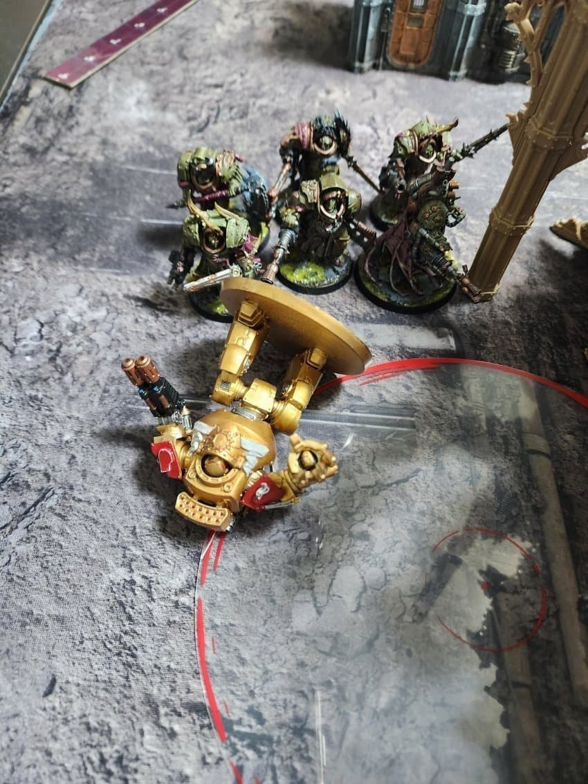 중앙의 플레이그 마린들은 파이트로 컨템터를 파괴시키나,