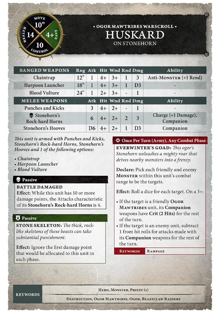 기존의 와드(5+)을 제공하던 스톤혼 특유의 '석조 골격'이 매 페이즈마다 받는 첫 데미지를 무시하는 효과로 변경되었다.