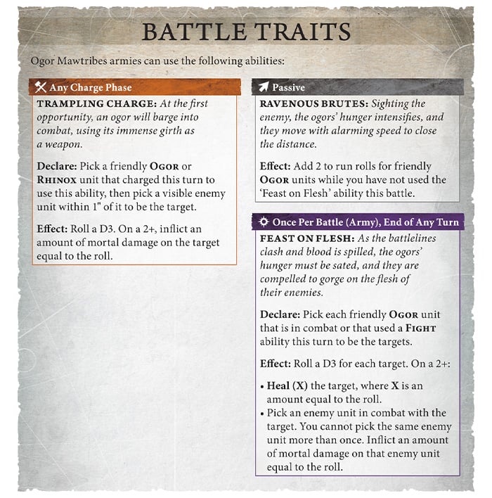 이번 턴에 전투(Fight) 능력을 사용했거나, 교전 중인 아군 오고어 유닛들을 대상으로 선택한다.