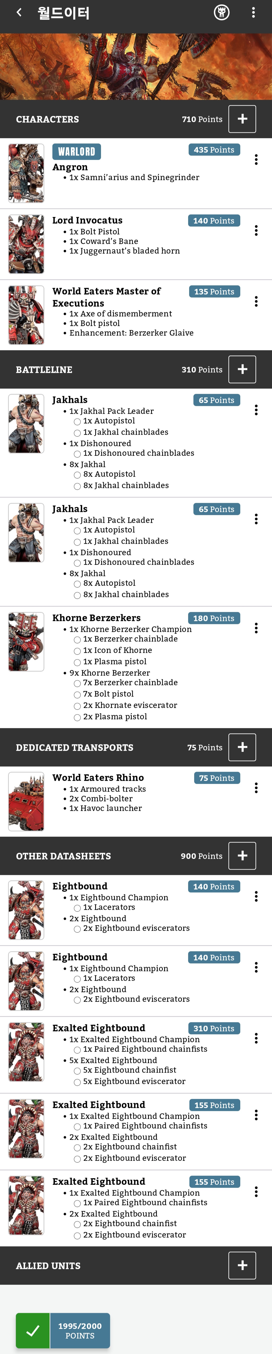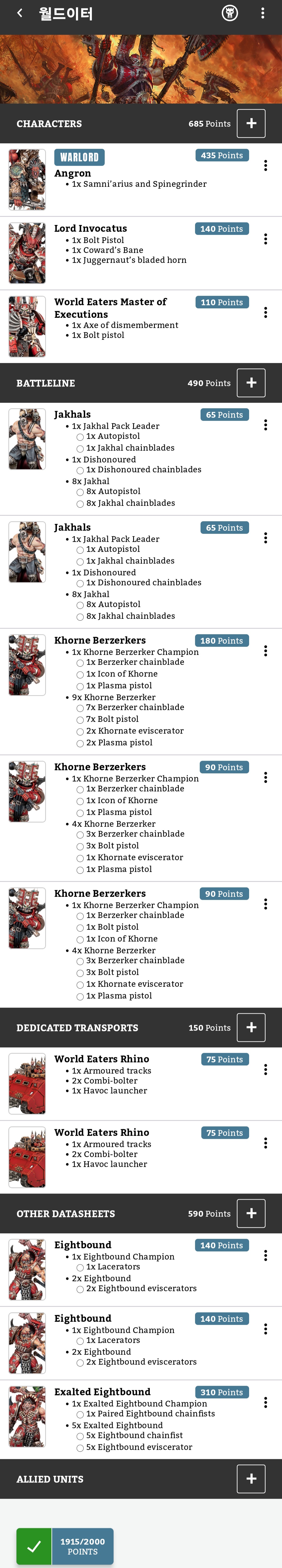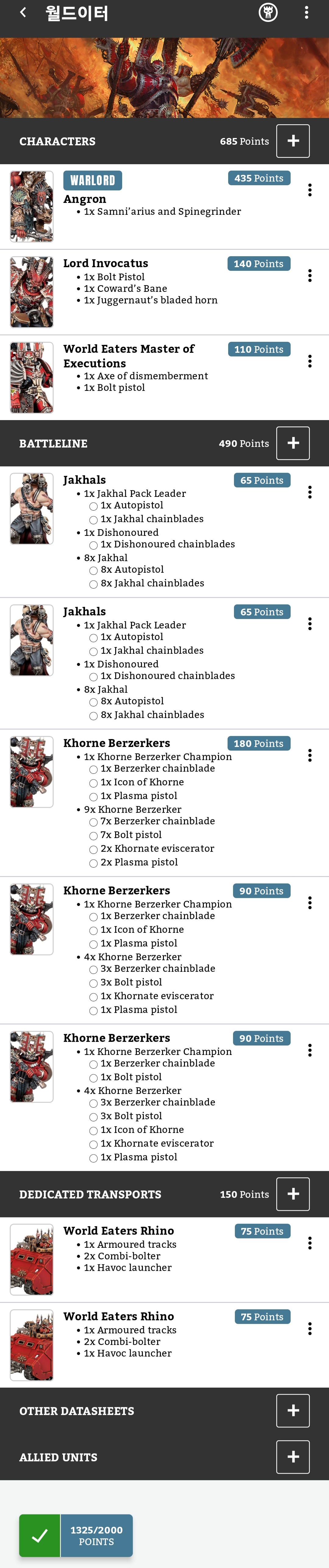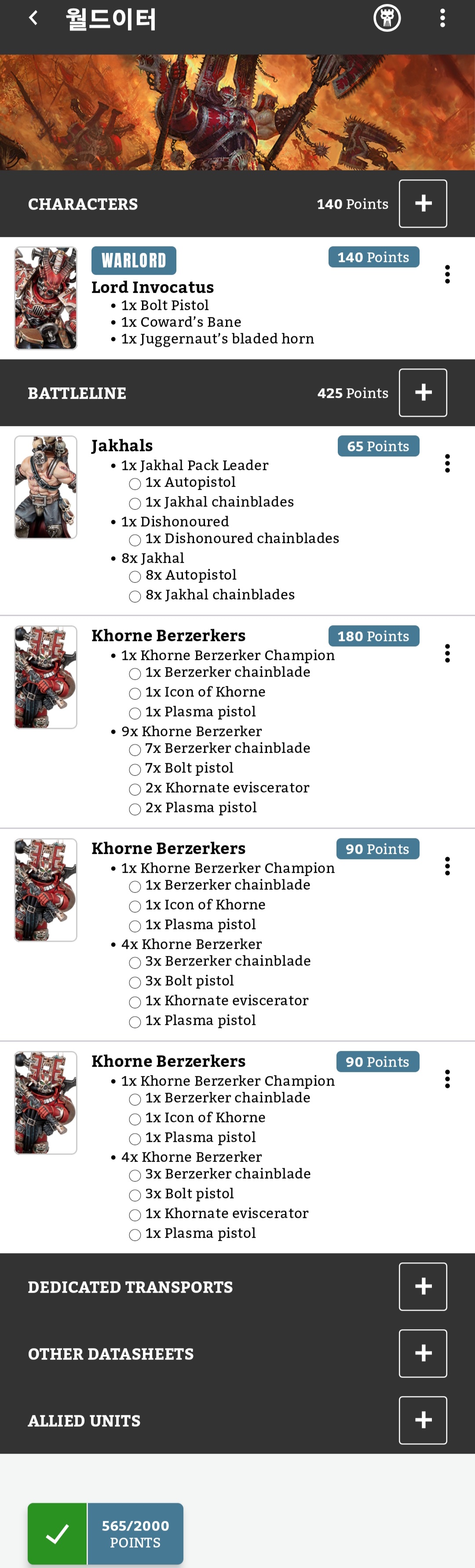 오늘 짠 로스터에서 버저커 5인 분대를 한 유닛 줄이고,
