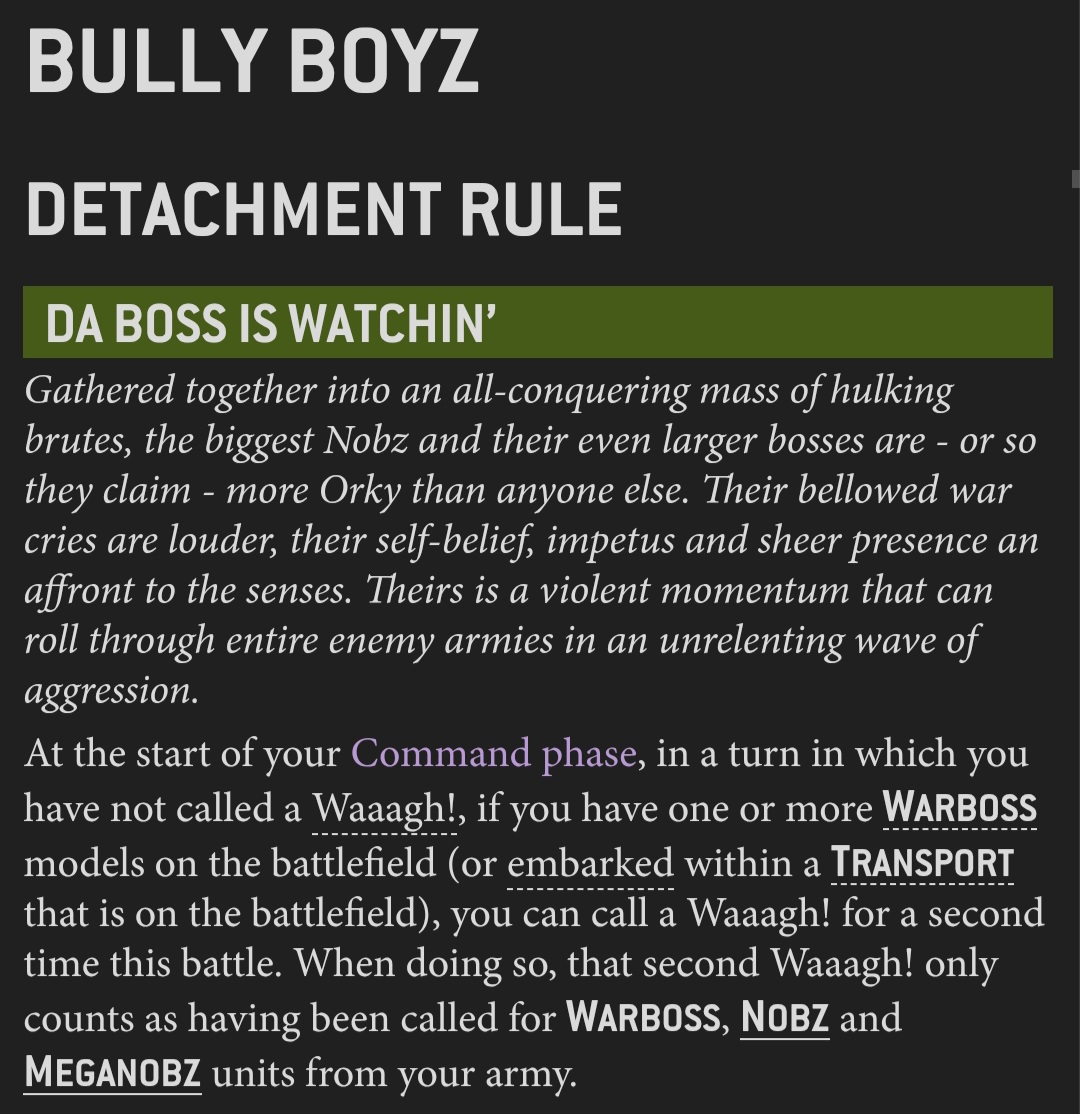2턴 WAAAGH!가 가능한 디태치는 불리 보이즈가 유일한데,