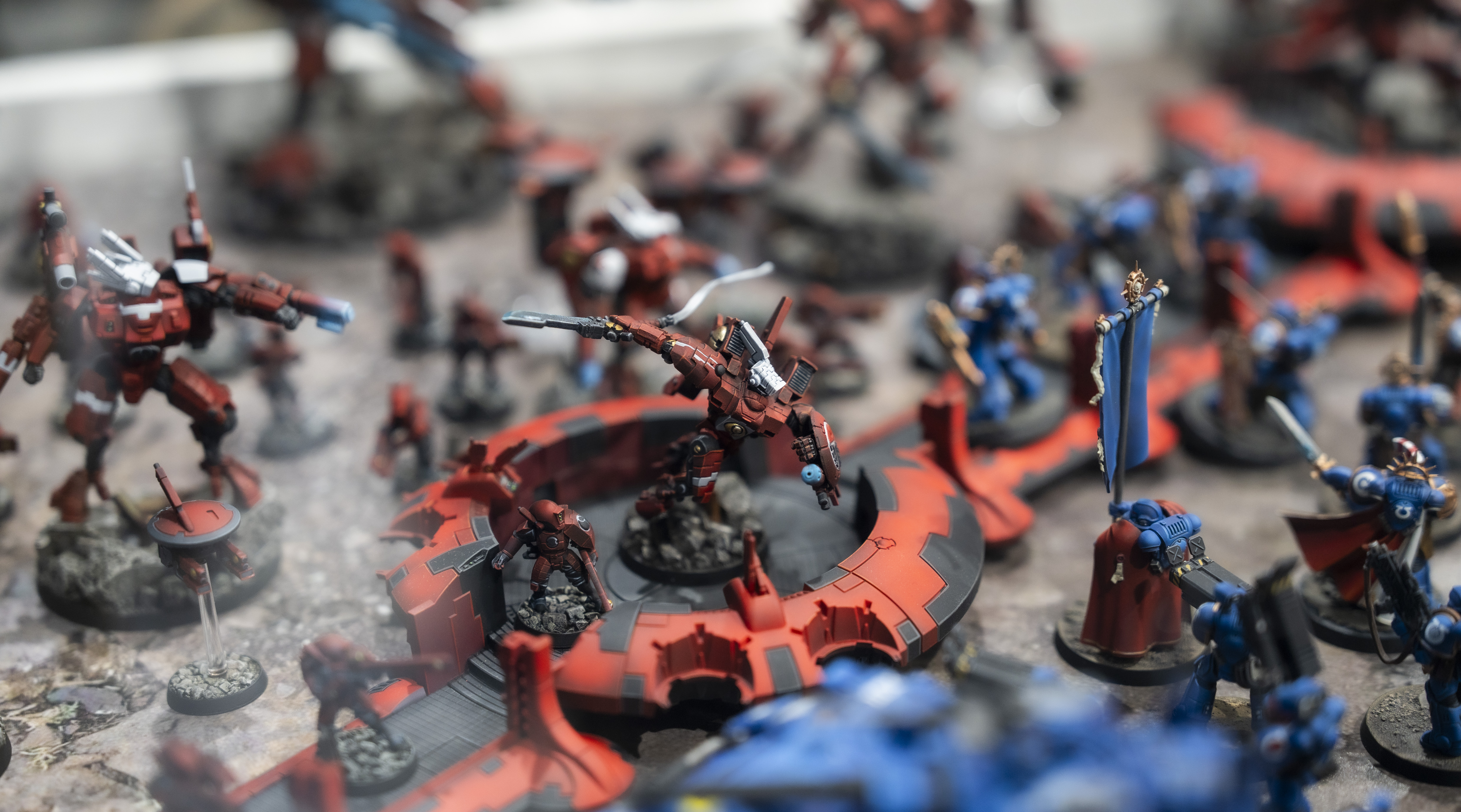 워해머를 대표하는 팩션 울트라마린과 이에 맞서는 외계종족 팩션 타우로 구성된 이번 디오라마에서는 방어선을 두고 한 치도 물러설 수 없는 양 진영 간의 팽팽한 긴장감을 드러내고자 했습니다.