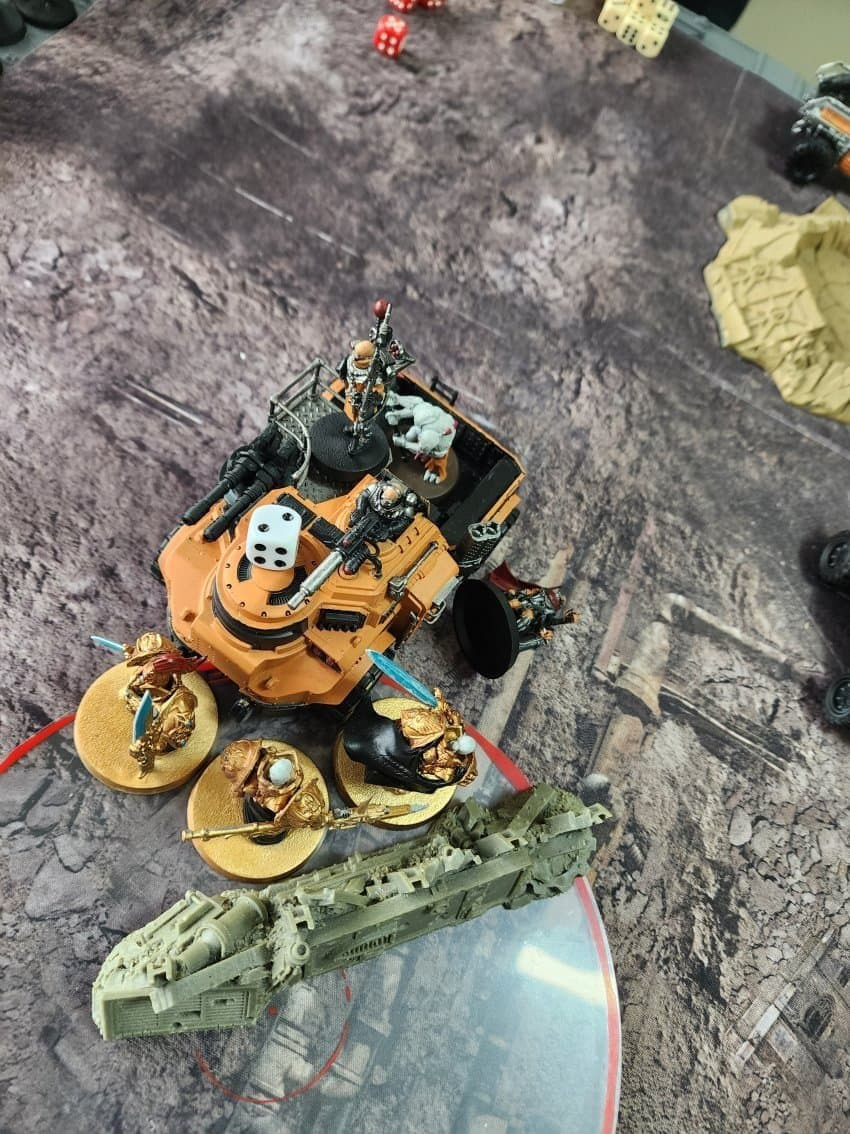 주사위 5+을 성공해 3 모탈 데미지를 블챔에게 먹여 파괴시킵니다.