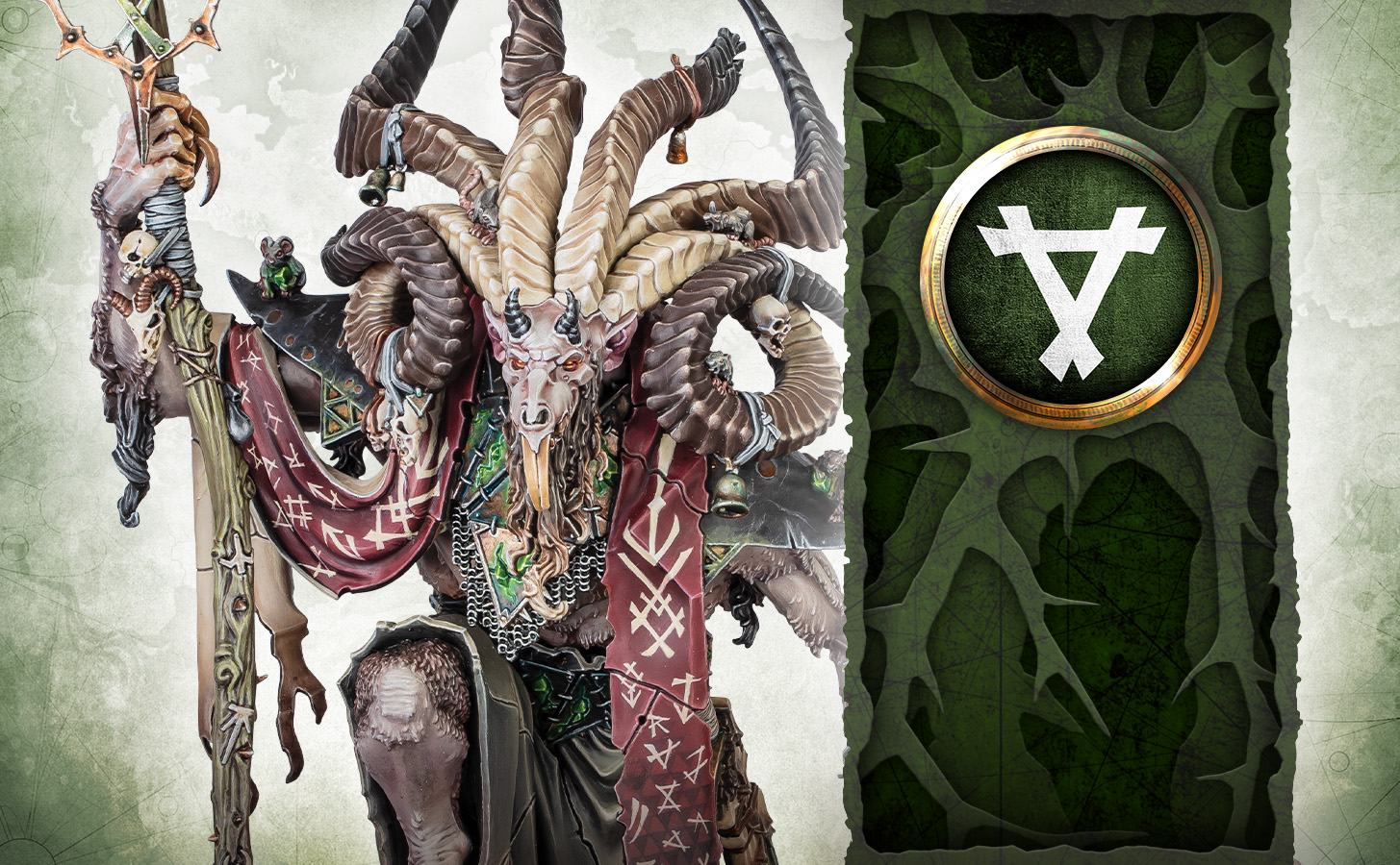 'Altar of the Horned Rat' (스케이븐 보병 대상 6+ 와드 부여) -> 'Echoes of the Vermindoom' (매 턴 종료시 13" 이내 완전히 들어온 모든 스케이븐 유닛 D3 회복)