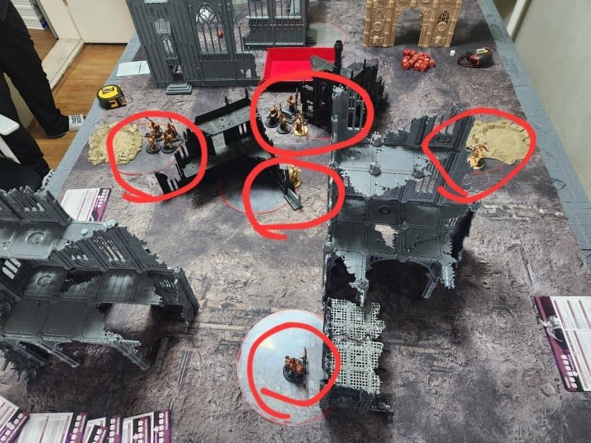 유닛을 소극적으로 이동하되, 6인치 이내 아군 유닛이 없도록 조정하여 디태치 룰을 등에 업고 사격전에 임합니다.