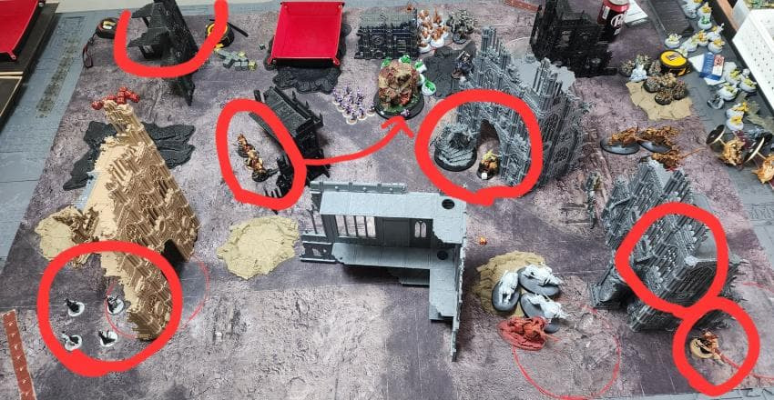인필 배치를 십분 발휘하여, 전방위적으로 바리케이트를 설치한 데몬의 배치가 돋보입니다.