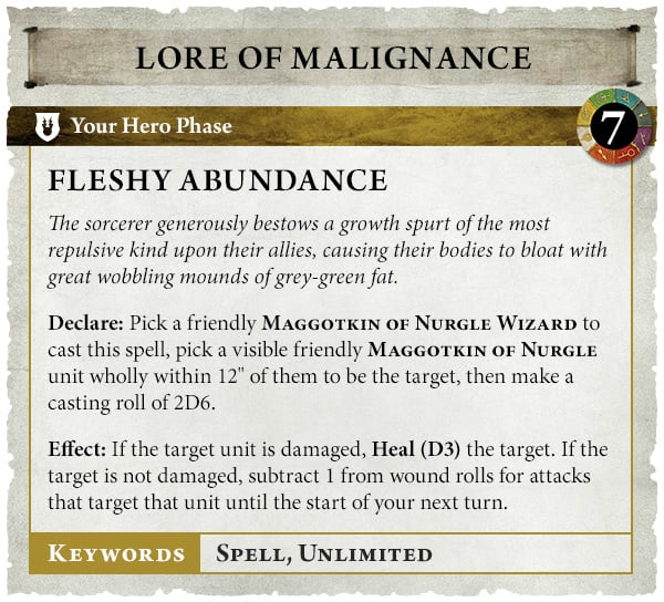 너글의 로커스는 턴 당 한번(아미), 자신의 이동 페이즈에 제거된 데몬 유닛의 절반만큼의 모델로 구성된 대체 유닛을 소환하는 능력인데, 횟수 제한이 없어 여전히 데몬 아미 밥줄로 활약할 것으로 보인다.
