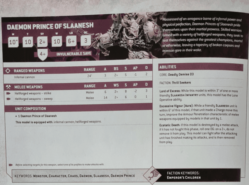 덕분에 40k의 모든 데프를 통틀어, 너글 데프들과 함께 가장 튼튼한 데몬 프린스로 등극해버렸으며,