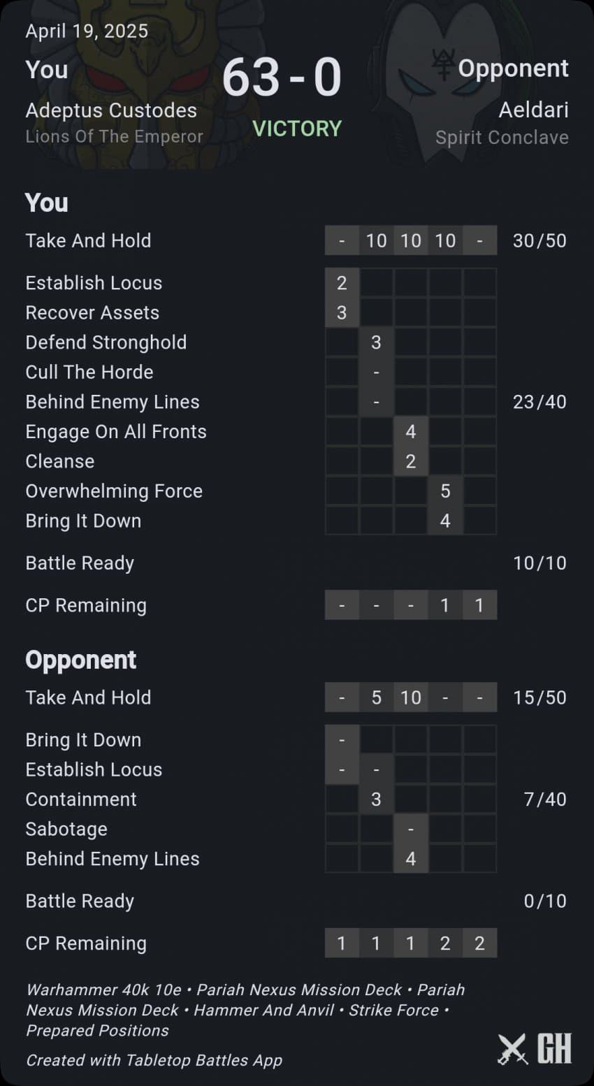 워해머 40K 배틀리포트 : 커스토디안 가드 VS 아엘다리(스피릿 호스트)