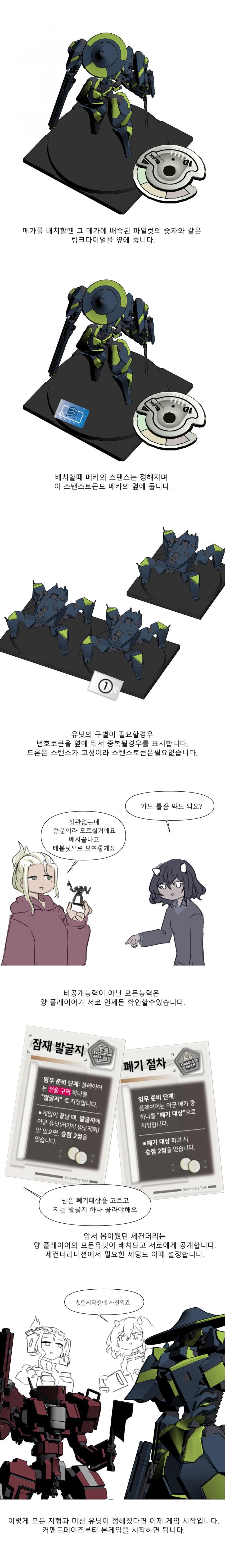 SF 메카 미니어처게임 옵시디언 프로토콜의 룰 설명 가이드만화입니다.