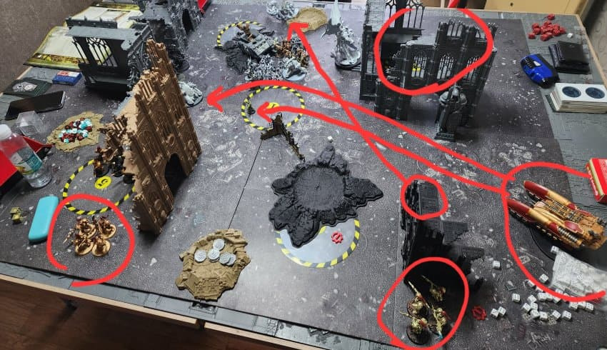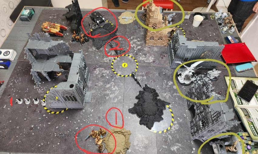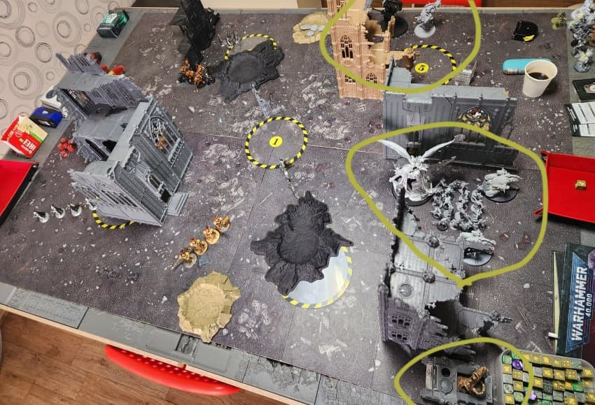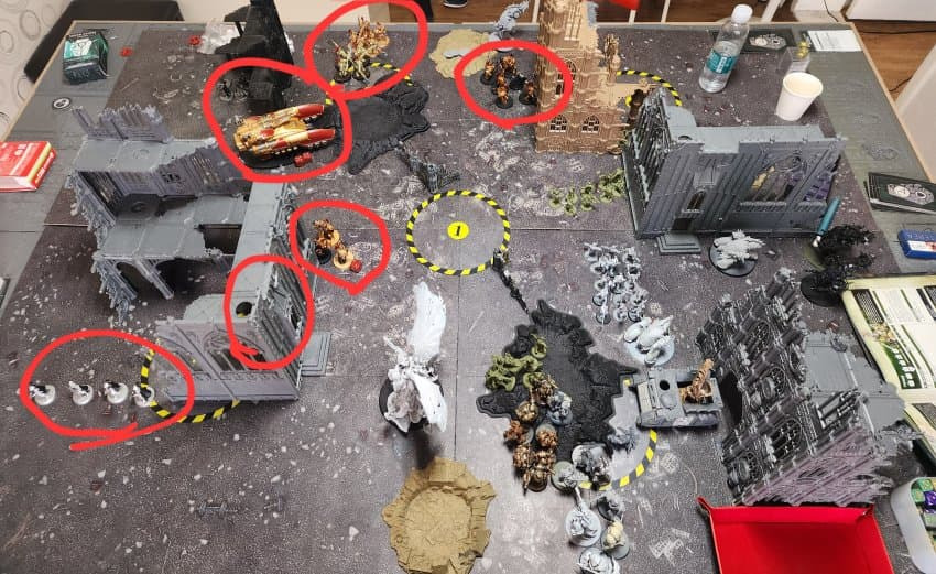 유닛을 더 많이 파괴한 데가 vs 커맨드 페이즈 때 마커를 더 많이 점령했었던 커가로 황밸이 이루어집니다.