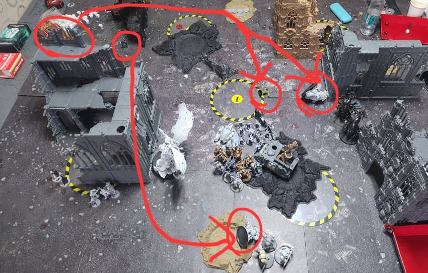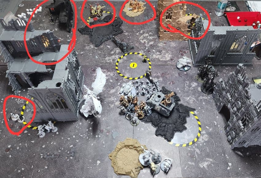유닛을 더 많이 파괴한 데가 vs 커맨드 페이즈 때 마커를 더 많이 점령했었던 커가로 황밸이 이루어집니다.