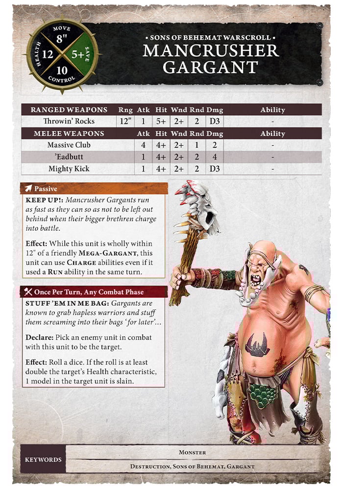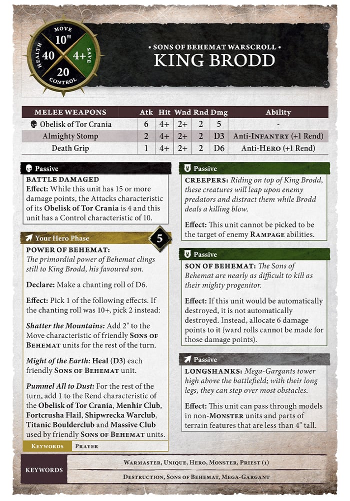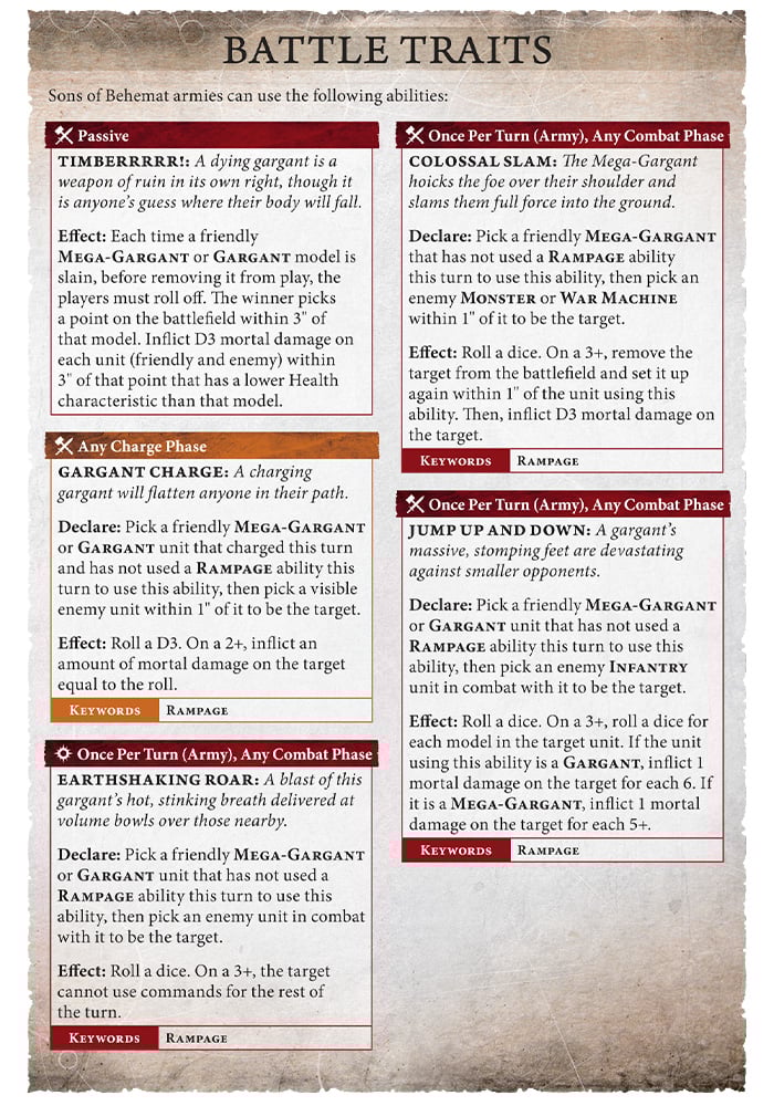거인 특유의 즉사 방지 능력인 베헤맷의 자손 능력은 이제 와드 가능한 D6댐 대신, 와드가 불가능한 6댐 고정으로 변경되었다.