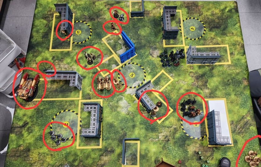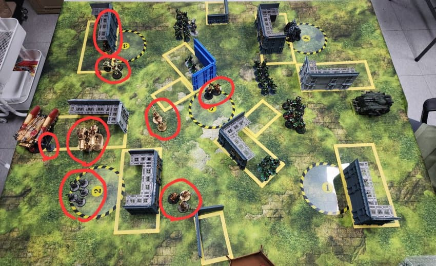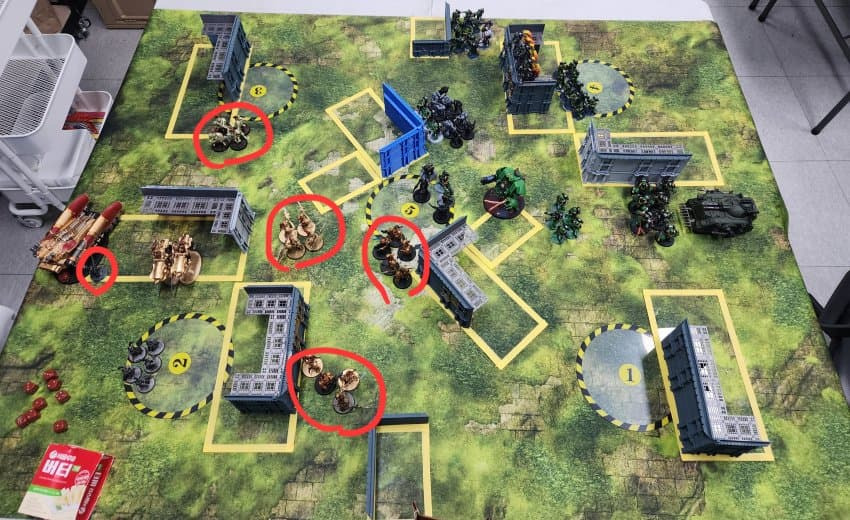 나머지 보병들은 디태치 룰을 등에 업고 파워아머 마린만 집요하게 노려봅시다.