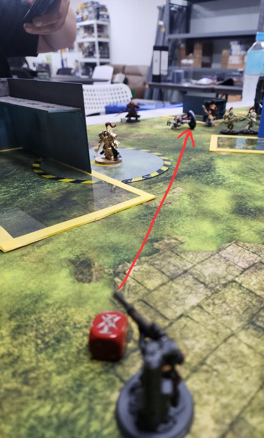 다음 쿠스토데스의 턴이 오면 인페르누스 분대의 파이어 오버워치(경계사격)를 받을 위협에 처합니다.