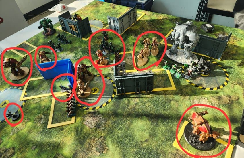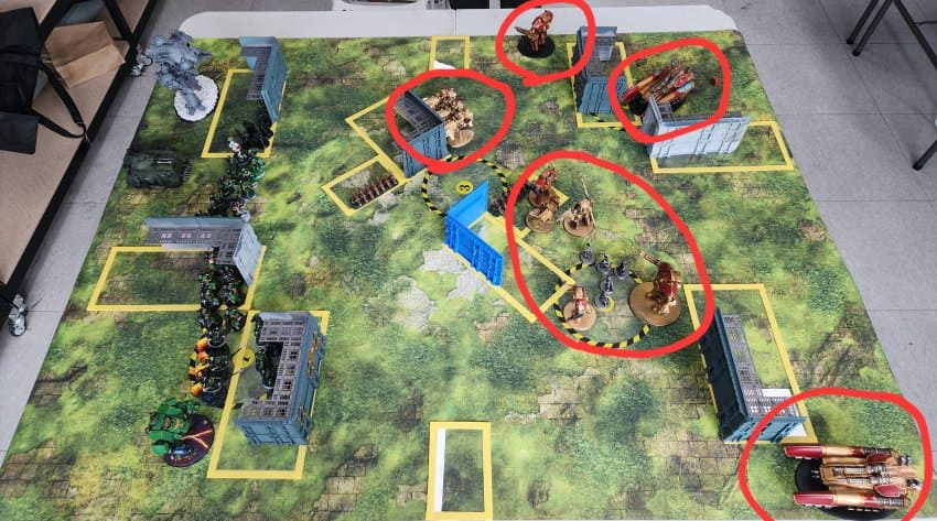 필자에게는 위치시커 분대와 칼리두스 어쌔신이 있으며, 상대는 리저브(예비대)에 유닛이 없습니다.