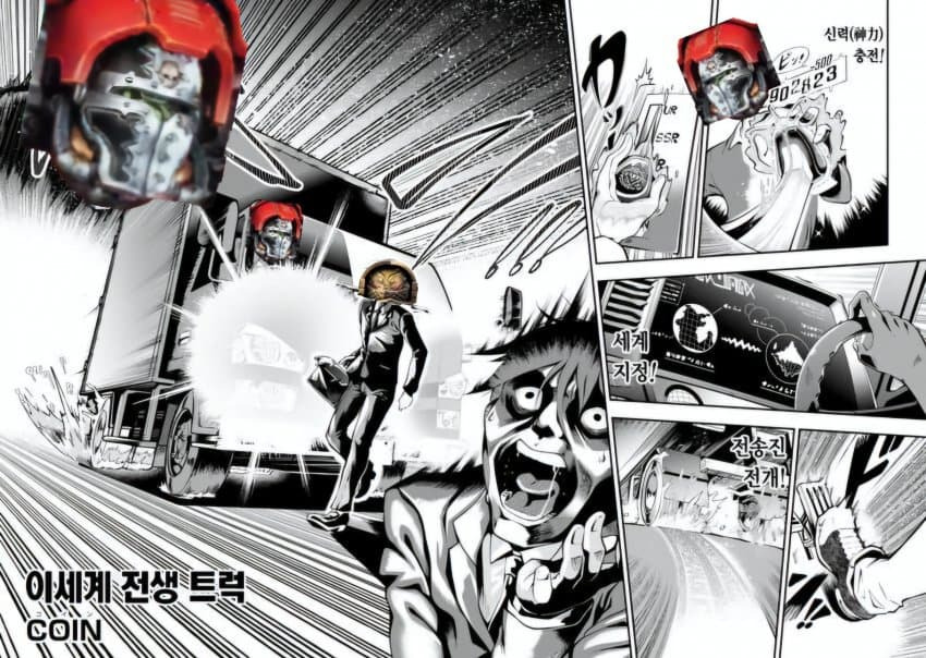 그대로 주먹을 휘둘러 루테넌트를 벽 째로 찌그러트리면서,