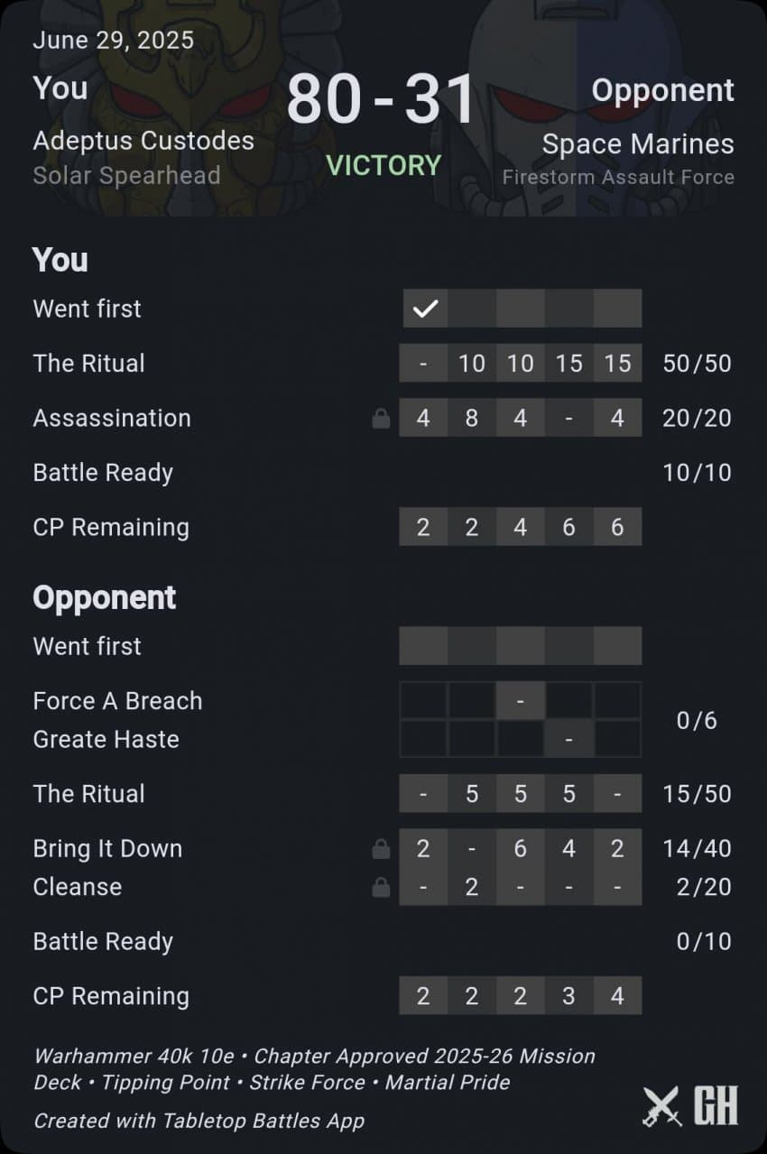 | 워해머 40K 배틀리포트 : 커스토디안 가드 VS 모타리온 (0) | 2025.09.28 |