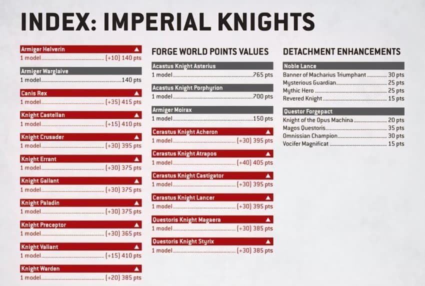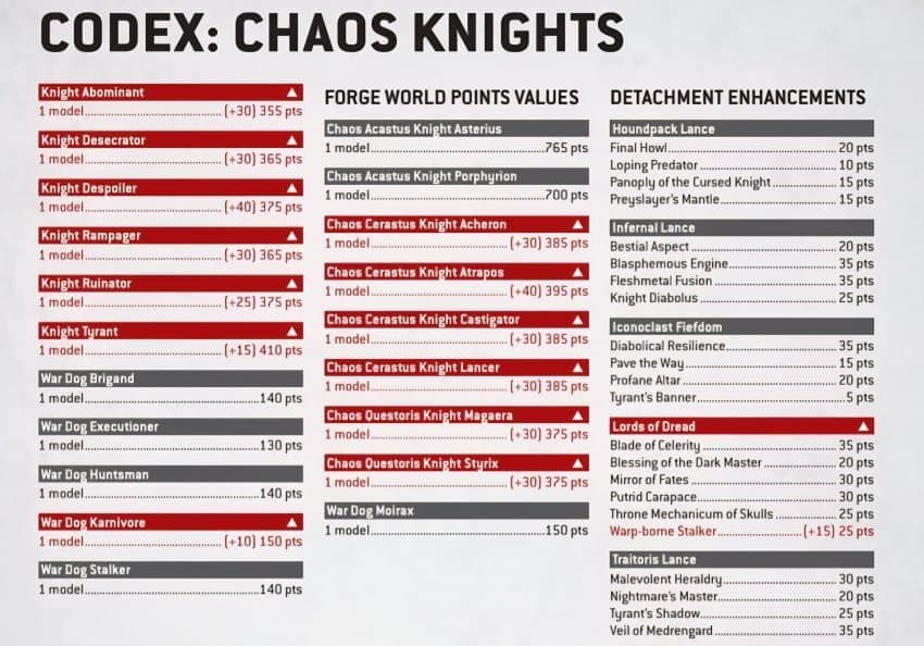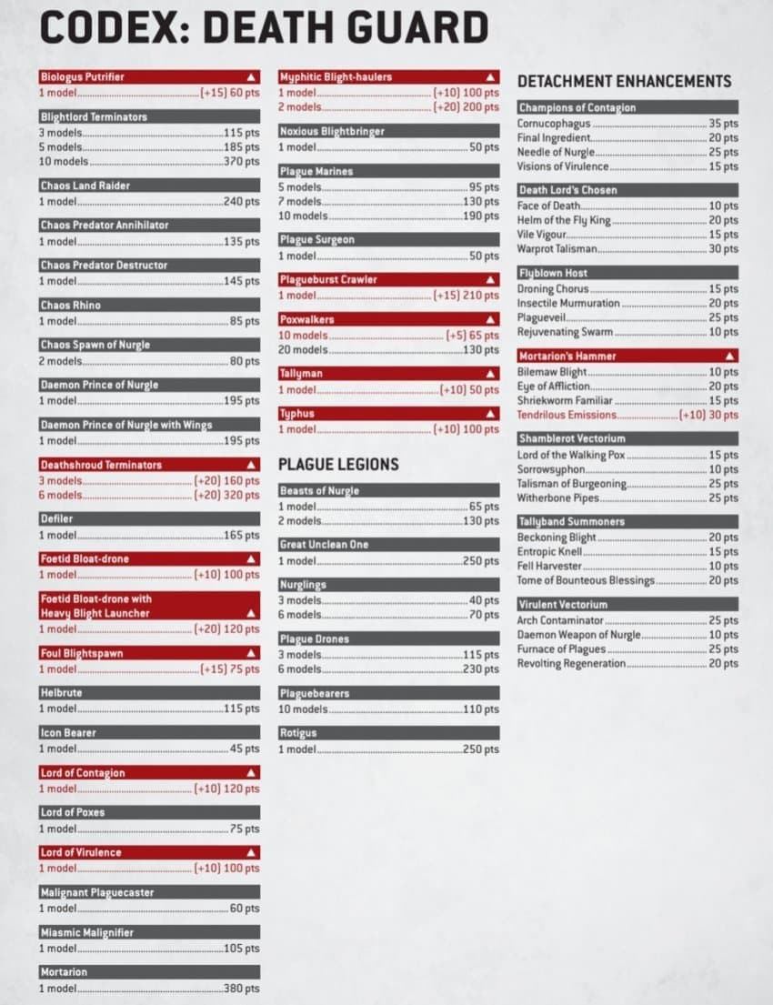 그냥 모타리온 / 온풋 데몬 프린스 정도만 제외하면, 데스 가드가 쓰던 모든 유닛과 인핸스먼트가 포인트 너프를 먹었습니다.