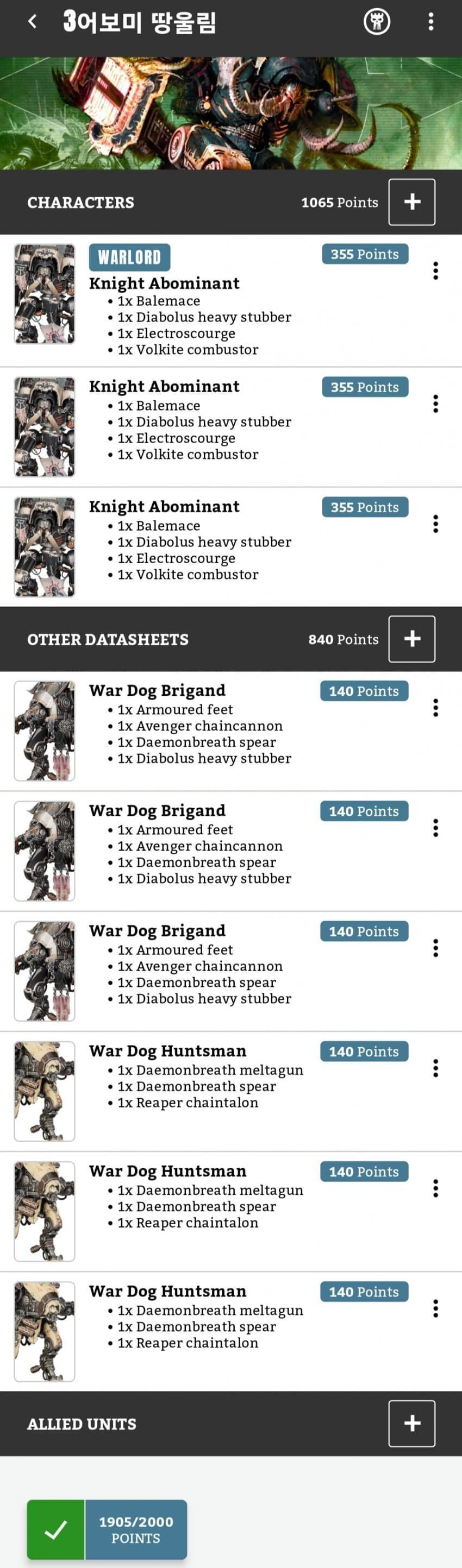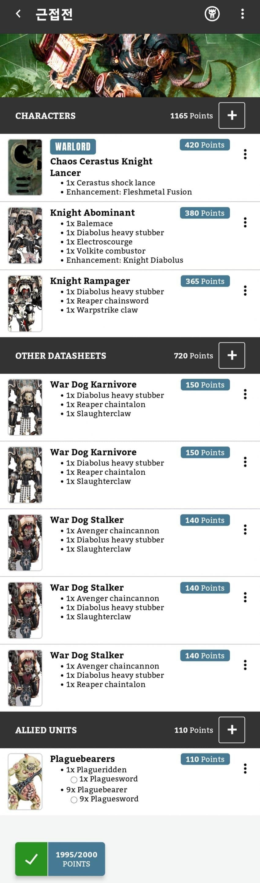 로드 오드 드레드 디태치먼트를 가진 카오스 나이트는 6빅나 같은 극단적인 로스터도 보이곤 했습니다.