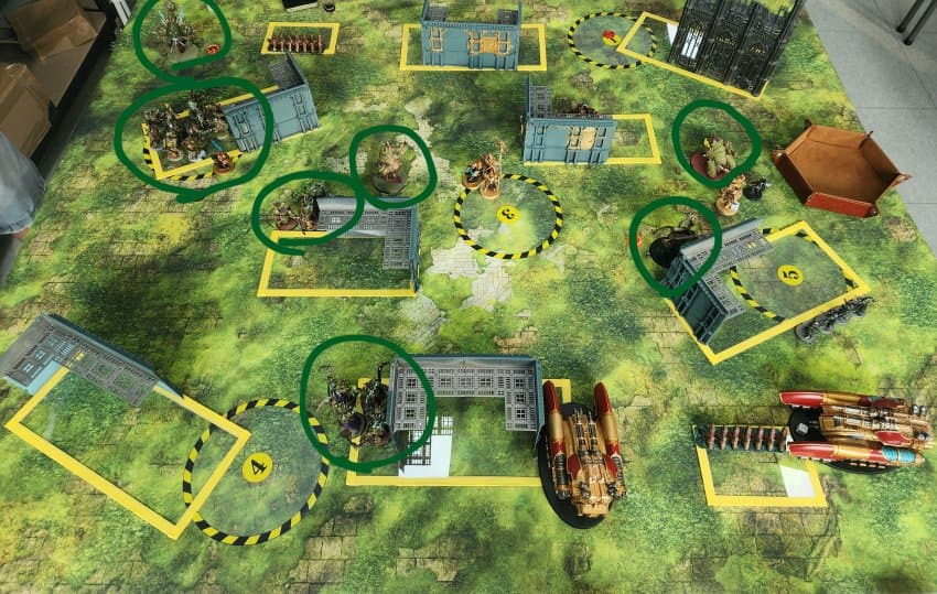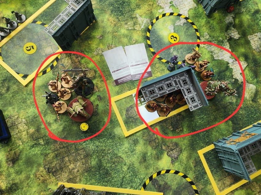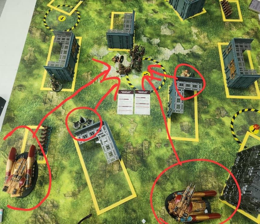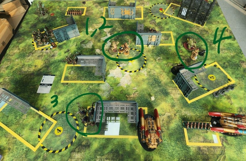 이후 사격 페이즈에 비질런스 이터널을 선언해 1번 마커의 점령을 계속 유지합니다.