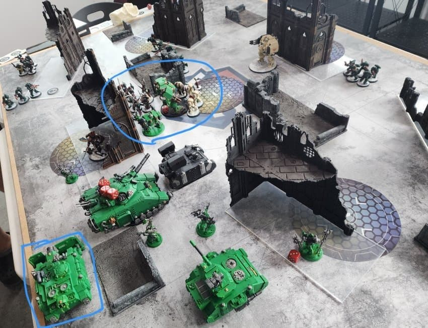 프레데터들을 전진시켜 다음 턴 사격각 확보와 리커버 에셋 선언을 준비합니다.