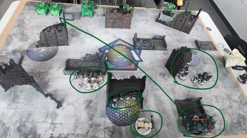 동그라미는 인필트레이터 능력으로 선행 배치한 콤비루테, 스카웃 스쿼드이며,