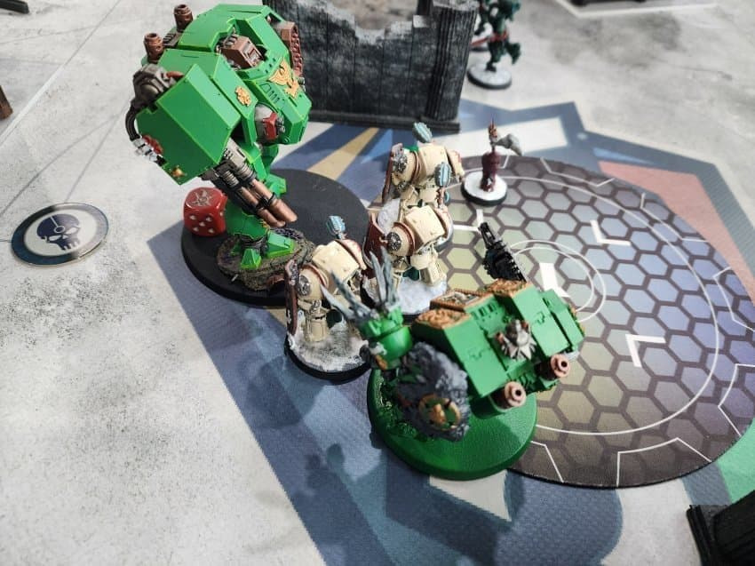데스윙 나이츠는 그대로 전장 중앙으로 돌진해 점령 중이던 발리스투스 드레드노트에 돌격합니다.