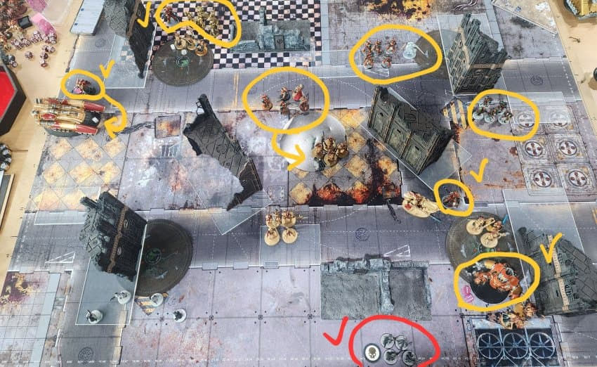 (마크드 포 데스는 상대가 알파 타겟의 3개 유닛을 지정하며, 미션 수행자가 이 중 하나라도 파괴하면 최대 승점)