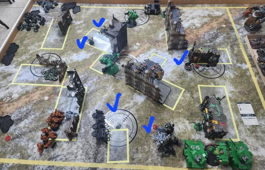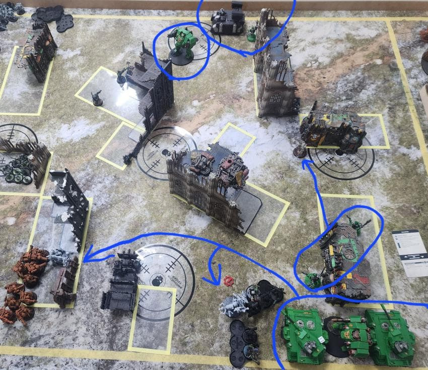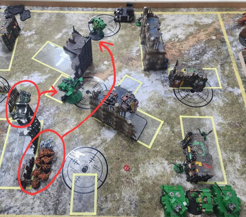 악랄한 울트라마린의 딥 스트라이크 배치로 인해, 마커에 도달한 모델은 루타즈 1모델 뿐입니다.