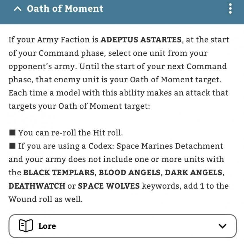 바로 스페이스 마린의 오스 오브 모먼트를 완벽하게 복제한 룰이기 때문입니다.