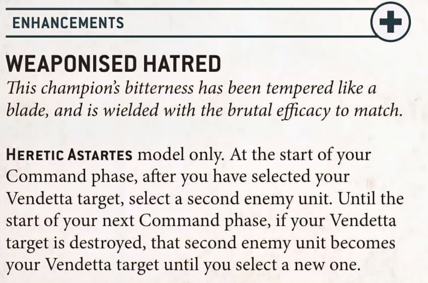당신 아미의 헤러틱 아스타르테스 모델이 벤데타 타겟을 공격할 때마다,