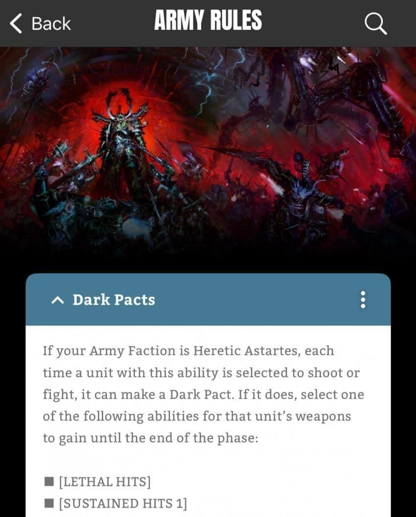 당신 아미의 헤러틱 아스타르테스 모델들은 다크 팩트 어빌리티를 잃습니다.