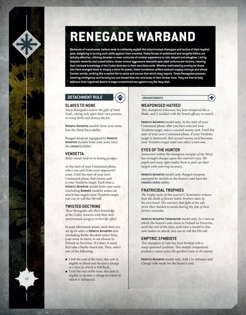 이 디태치의 컨셉이 레니게이드 챕터나 워밴드 컨셉이라는걸 단적으로 표현하는 디태치 룰입니다.