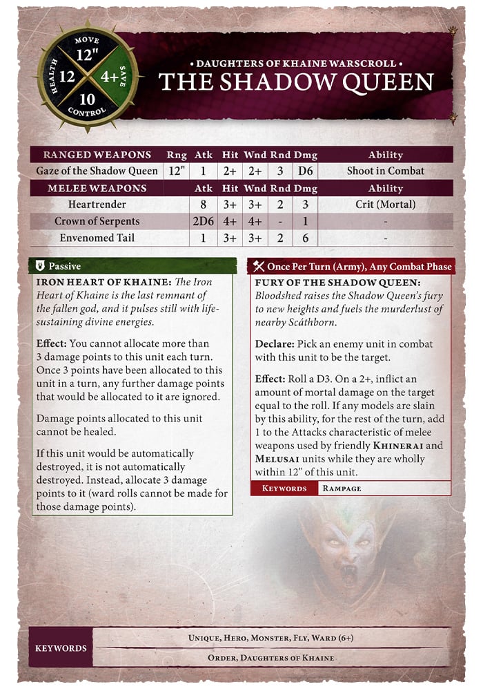 그들의 여주인공은 한때 케인 교단의 고위 예언자이었고 지금은 살아있는 여신인 모라티-케인입니다. 고대 마법사이자 그림자 왕 말레리온의 어머니인 모라티는 신화 시대에 지그마의 판테온에서 그다지 신성하지 않은 일원으로 활동했습니다. 나머지 질서의 세력과의 그녀의 동맹은 항상 불안했지만, 이제 그녀는 신성으로 가는 길을 계획했기 때문에 파멸의 시간에서 그 어느 때보다 더 비밀스러운 행보를 보이고 있습니다.