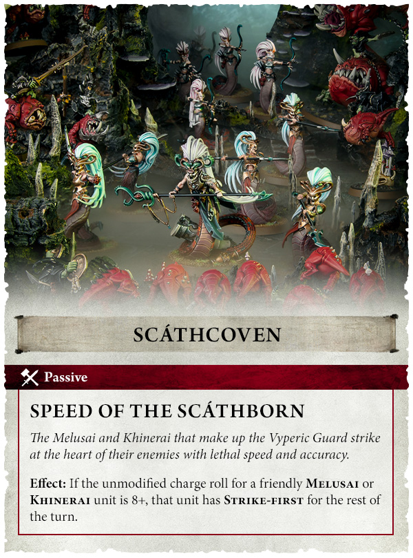 아군 멜루사이나 키네라이 유닛의 보정 받지 않은 돌격 굴림값이 8+ 이라면, 해당 유닛은 이번 턴 동안 스트라이크-퍼스트를 얻는다.