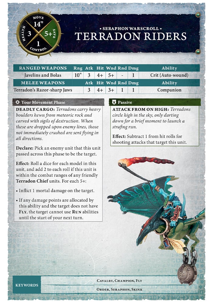 사우루스는 아그라돈이나 카르노사우루스와 같은 최상위 포식자를 길들이는 회색빛 짐승인 Oldbloods와 Scar-Veterans의 지휘를 받습니다. 세라폰이 개입할 때, 그것은 올드 원이 존재로 만든 형언할 수 없지만 공리적인 계획의 표현으로서, 우주적 정확성으로 휘두르는 무자비한 힘과 마법적인 힘의 세심하게 고려된 균형입니다. 별의 무리에 맞서는 것은 헤아릴 수 없는 지성의 의지에 직면하는 것입니다.