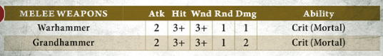 무장 프로필은 크게 근접 무장(Melee Weapons)과 사격 무장(Ranged Weapns)으로 나뉜다.