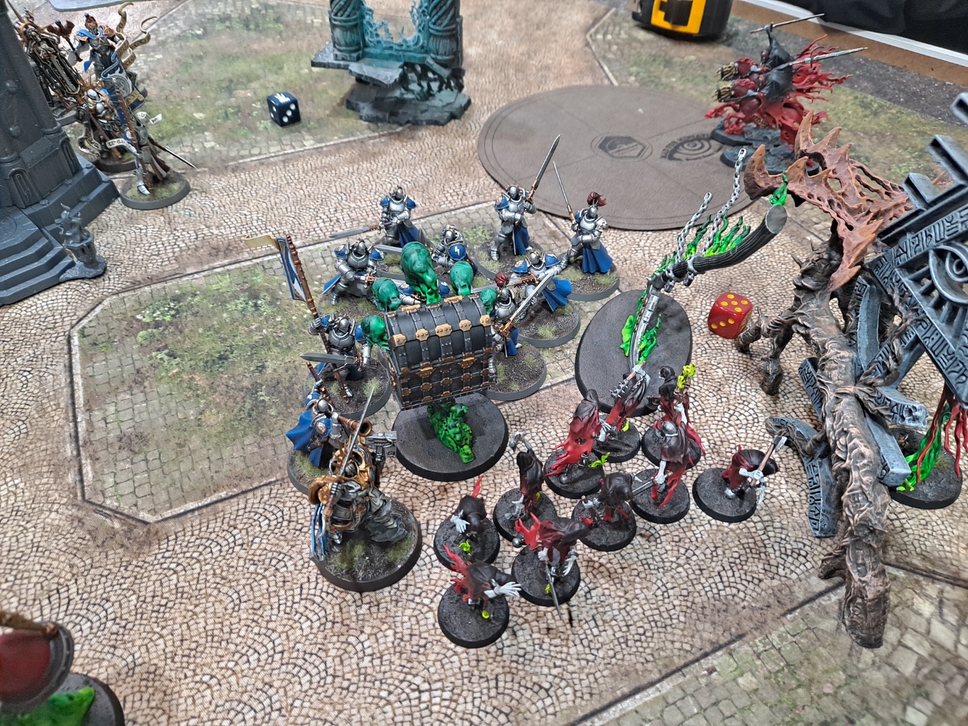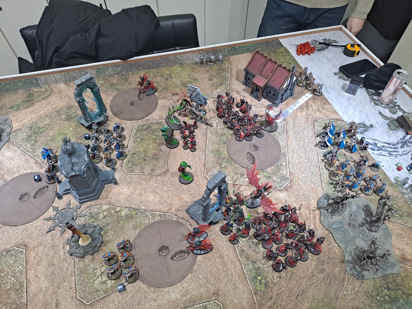 그대로 전멸합니다. 나이트헌트 측이 세개의 오브젝트는 유지(5점)하며, 배틀택틱을 달성(4점)하여 9점을 확보합니다.