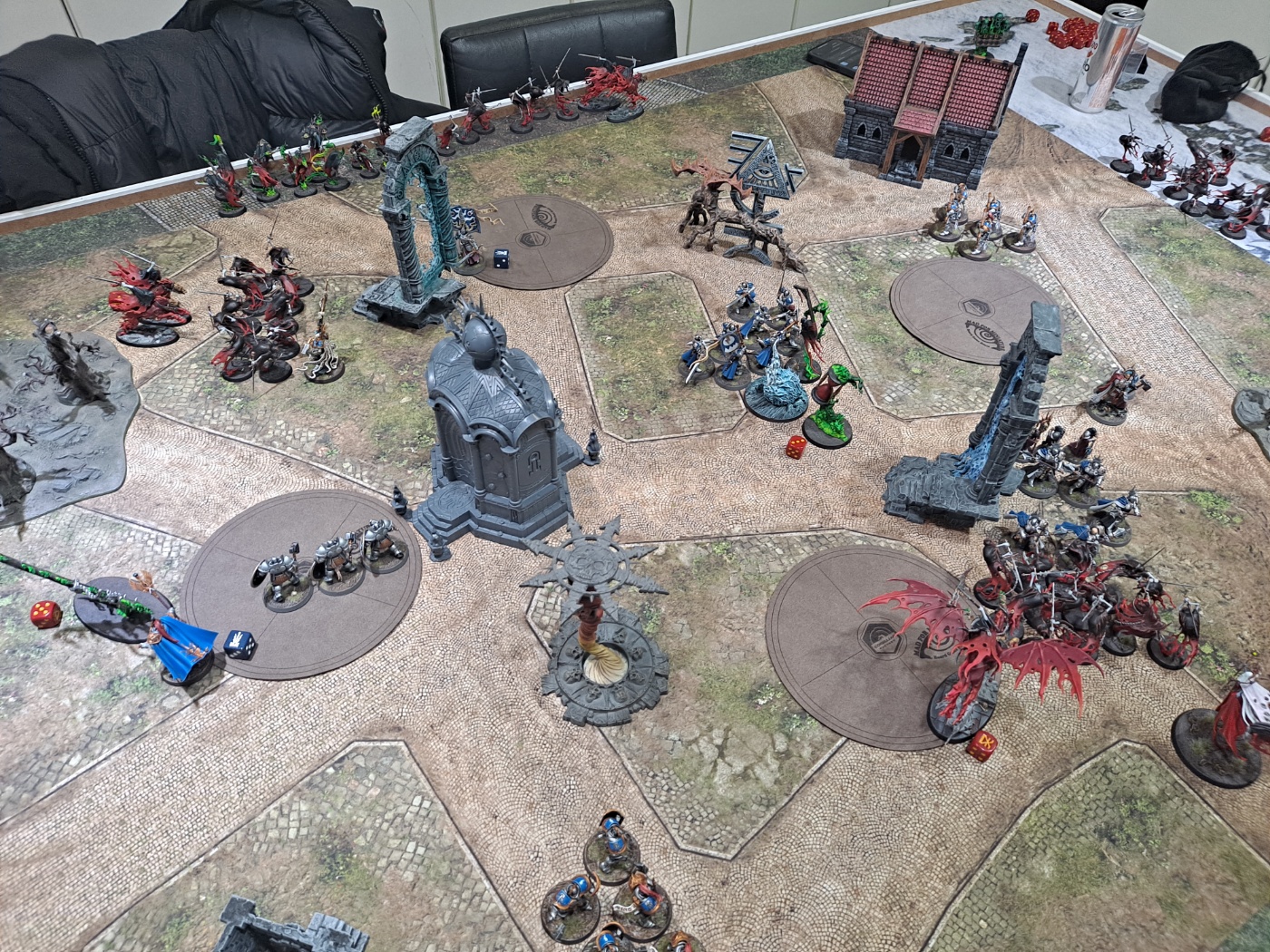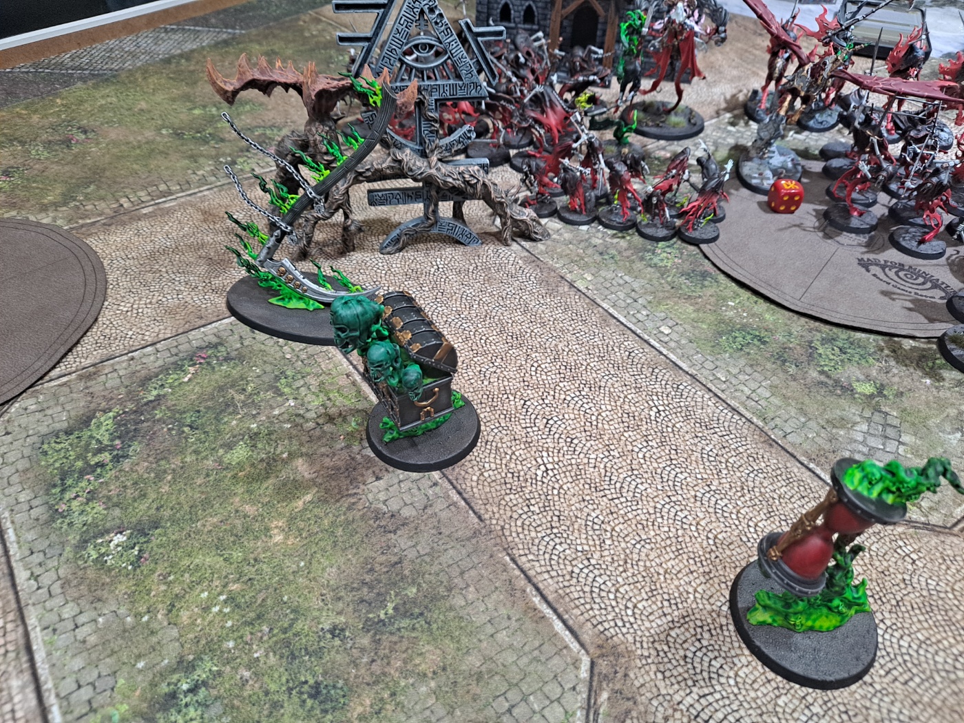그대로 전멸합니다. 나이트헌트 측이 세개의 오브젝트는 유지(5점)하며, 배틀택틱을 달성(4점)하여 9점을 확보합니다.