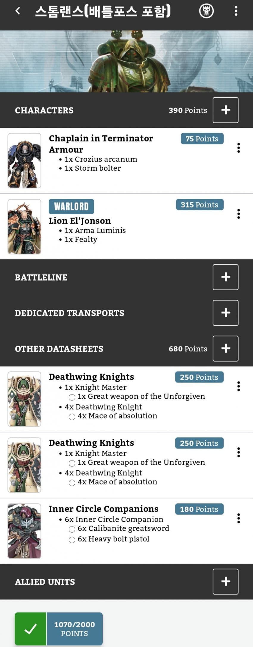 이번 편은 다크엔젤 배틀포스를 보유했다는 가정하에 로스터를 그려보겠습니다.