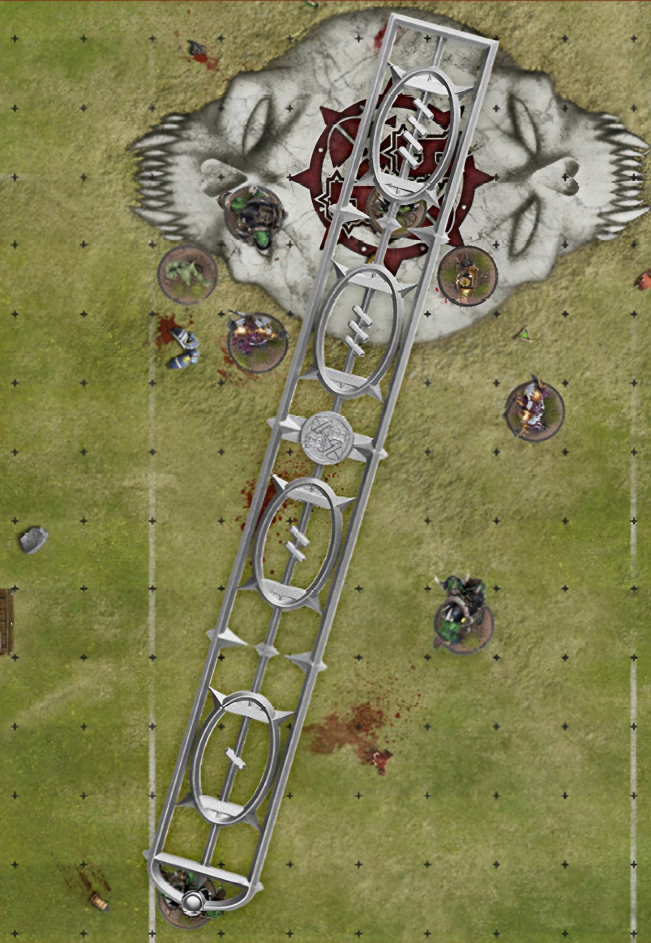 인접한 칸으로 선수를 이동시킵니다. d6의 돌진 테스트를 진행합니다. 2+에 돌진은 성공합니다.