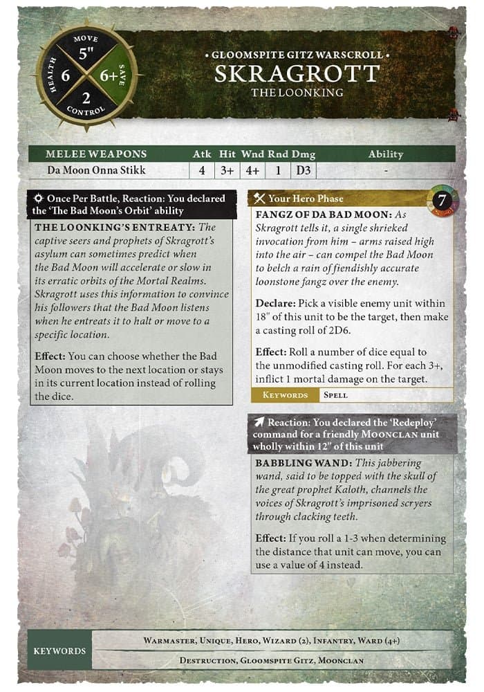 아군 글룸스파이트 깃츠 유닛들은 달빛을 받는 동안, 키워드에 따라 다음의 효과를 얻는다.