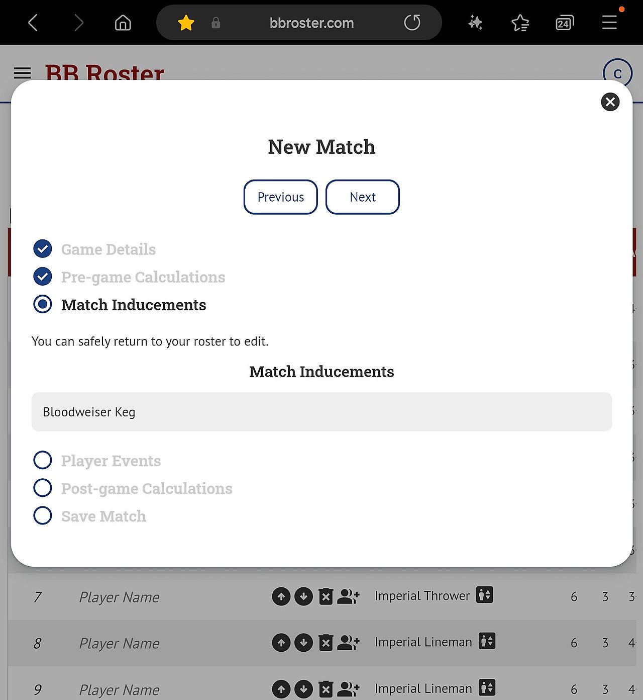 Create team rosters for Blood Bowl 2020. Includes all current teams, star players and inducements. Exhibition and league matches.